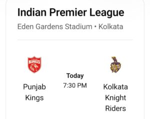 👉पंजाब किंग्स और कोलकाता नाइट्स राइडर्स के बीच मैच आज शाम को आज IPL