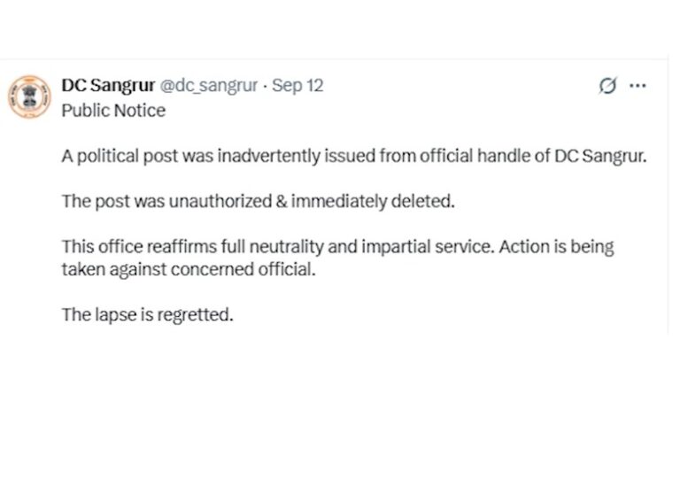 🚩 PM ਮੋਦੀ ਖ਼ਿਲਾਫ਼ DC ਦੇ ਸੋਸ਼ਲ ਮੀਡੀਆ ਅਕਾਊਂਟ ਤੋਂ ਪਈ ਪੋਸਟ, ਜ਼ਿੰਮੇਵਾਰ ਅਧਿਕਾਰੀਆਂ