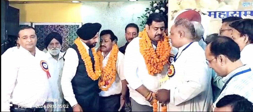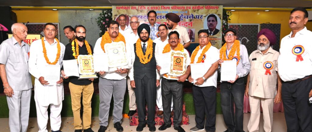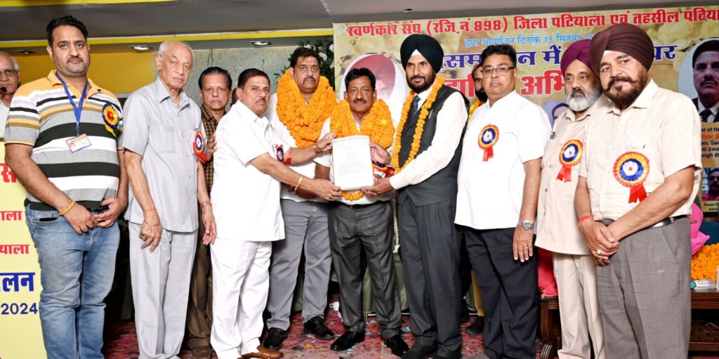 ਪਟਿਆਲਾ / ਨਿਊਜ਼ਲਾਈਨ ਐਕਸਪ੍ਰੈਸ ਬਿਊਰੋ – ਪਟਿਆਲਾ ਦੇ ਸ਼ਾਹੀ ਸ਼ਹਿਰ ਵਿਖੇ ਐਤਵਾਰ ਨੂੰ ਜਿਲ੍ਹਾ ਅਤੇ ਤਹਿਸੀਲ ਪਟਿਆਲਾ ਦੇ ਸਵਰਨਕਾਰ ਸੰਘ ਵੱਲੋਂ ਮਹਾ ਸੰਮੇਲਨ ਕਰਵਾਇਆ ਗਿਆ। ਇਸ ਮੌਕੇ ਵਿਸ਼ੇਸ਼ ਤੌਰ ‘ਤੇ ਆਲ ਇੰਡੀਆ ਸਵਰਨਕਾਰ ਸੰਘ ਦੇ ਪ੍ਰਧਾਨ ਕਰਤਾਰ ਸਿੰਘ ਜੌੜਾ ਅਤੇ ਪੰਜਾਬ ਦੇ ਜਨਰਲ ਸਕੱਤਰ ਮੁਖਤਿਆਰ ਸਿੰਘ ਸੋਨੀ ਵਿਸ਼ੇਸ਼ ਤੌਰ ਤੇ ਪਹੁੰਚੇ।