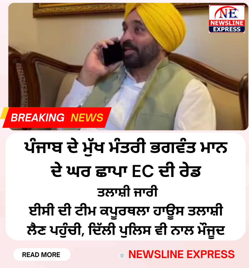 ਦਿੱਲੀ, 30 ਜਨਵਰੀ – ਨਿਊਜ਼ਲਾਈਨ ਐਕਸਪ੍ਰੈਸ – ਦਿੱਲੀ ਵਿਚ ਪੰਜਾਬ ਸੀਐਮ ਮਾਨ ਦੀ ਰਿਹਾਇਸ਼ ਉਤੇ ਇਲੈਕਸ਼ਨ ਕਮਿਸ਼ਨ ਨੇ ਛਾਪਾ ਮਾਰਿਆ ਹੈ। ਦਿੱਲੀ ਵਿੱਚ ਵਿਧਾਨ ਸਭਾ ਚੋਣਾਂ ਦੇ ਰਾਜਨੀਤਿਕ ਉਤਸ਼ਾਹ ਵਿਚਕਾਰ ਇੱਕ ਵੱਡੀ ਖ਼ਬਰ ਸਾਹਮਣੇ ਆਈ ਹੈ। ਚੋਣ ਕਮਿਸ਼ਨ (EC) ਨੇ ਪੰਜਾਬ ਦੇ ਮੁੱਖ ਮੰਤਰੀ ਭਗਵੰਤ ਮਾਨ ਦੇ ਘਰ ਛਾਪਾ ਮਾਰਿਆ। ਟੀਮ ਦਿੱਲੀ ਵਿੱਚ ਪੰਜਾਬ ਦੇ ਮੁੱਖ ਮੰਤਰੀ ਦੇ ਘਰ ਦੀ ਤਲਾਸ਼ੀ ਲੈ ਰਹੀ ਹੈ।