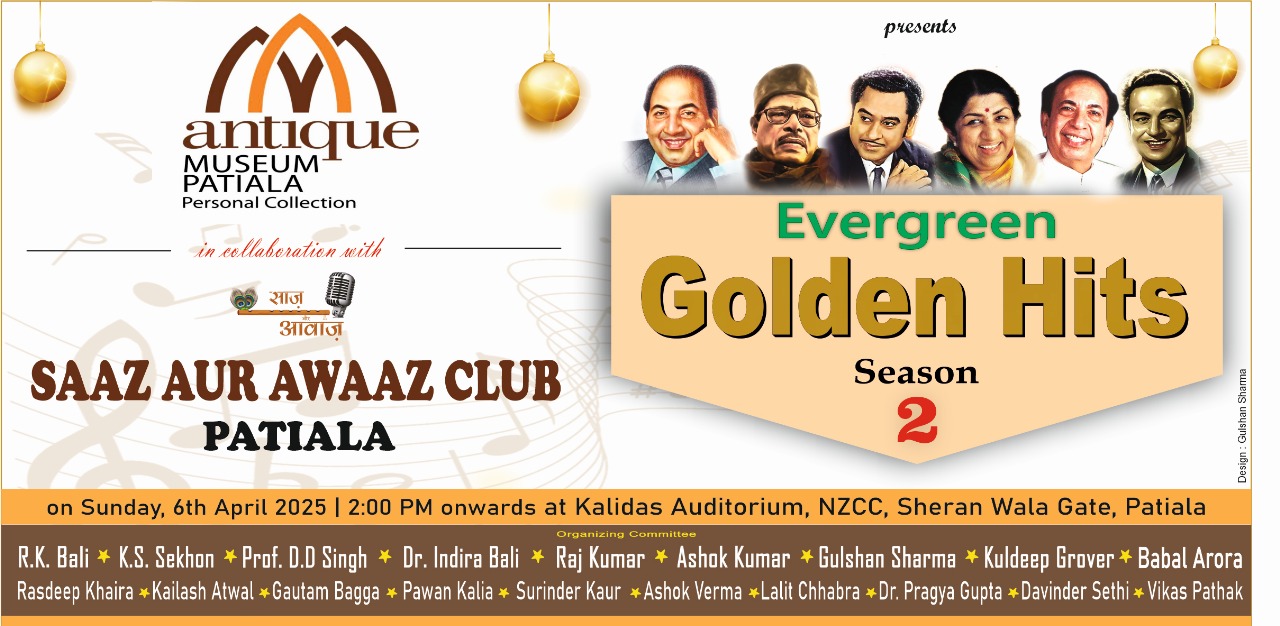 ਪਟਿਆਲਾ, 6 ਅਪ੍ਰੈਲ – ਨਿਊਜ਼ਲਾਈਨ ਐਕਸਪ੍ਰੈਸ – ਸਾਜ਼ ਔਰ ਆਵਾਜ਼ ਕਲੱਬ ਪਟਿਆਲਾ ਵੱਲੋਂ 6 ਅਪ੍ਰੈਲ ਦਿਨ ਐਤਵਾਰ ਨੂੰ ਨਾਰਥ ਜ਼ੋਨ ਕਲਚਰ ਸੈਂਟਰ (NZCC), ਨੇੜੇ ਭਾਸ਼ਾ ਵਿਭਾਗ, ਛੋਟੀ ਬਾਰਾਂਦਰੀ ਪਟਿਆਲਾ ਵਿਖੇ ਇੱਕ ਹੋਰ ਖੂਬਸੂਰਤ ਸੰਗੀਤਕ ਸ਼ਾਮ ਦਾ ਆਯੋਜਨ ਕੀਤਾ ਜਾ ਰਿਹਾ ਹੈ। ਇਸ ਸਬੰਧੀ ਜਾਣਕਾਰੀ ਦਿੰਦਿਆਂ ਸਾਜ਼ ਅਤੇ ਆਵਾਜ਼ ਕਲੱਬ ਦੇ ਮੁਖੀ ਰਵਿੰਦਰ ਕੁਮਾਰ ਬਾਲੀ, ਉਪ ਮੁਖੀ ਕੇ.ਐਸ. ਸੇਖੋਂ ਅਤੇ ਜਨਰਲ ਸਕੱਤਰ ਰਾਜ ਕੁਮਾਰ ਆਦਿ ਨੇ ਦੱਸਿਆ ਕਿ ਇਸ ਪ੍ਰੋਗਰਾਮ ਦੀਆਂ ਸਾਰੀਆਂ ਤਿਆਰੀਆਂ ਮੁਕੰਮਲ ਕਰ ਲਈਆਂ ਗਈਆਂ ਹਨ। ਇਸ ਪ੍ਰੋਗਰਾਮ ਵਿੱਚ ਪਟਿਆਲਾ ਤੋਂ ਇਲਾਵਾ ਪੰਜਾਬ ਅਤੇ ਹੋਰ ਸ਼ਹਿਰਾਂ ਤੋਂ ਬਹੁਤ ਹੀ ਖੂਬਸੂਰਤ ਆਵਾਜ਼ਾਂ ਵਾਲੇ ਗਾਇਕ ਆਪਣੀ ਆਵਾਜ਼ ਦਾ ਜਾਦੂ ਬਿਖੇਰਨ ਲਈ ਆ ਰਹੇ ਹਨ। ਉਨ੍ਹਾਂ ਕਿਹਾ ਕਿ ਇਸ ਪ੍ਰੋਗਰਾਮ ਵਿੱਚ ਕੋਈ ਐਂਟਰੀ ਫੀਸ ਨਹੀਂ ਹੈ, ਇਸ ਲਈ ਆਪ ਸਭ ਨੂੰ ਆਪਣੇ ਪਰਿਵਾਰ ਸਮੇਤ ਇਸ ਪ੍ਰੋਗਰਾਮ ਵਿੱਚ ਦੋਪਹਿਰ ਡੇਢ ਵਜੇ ਪਹੁੰਚਣ ਅਤੇ ਸੰਗੀਤ ਦਾ ਆਨੰਦ ਮਾਨਣ ਲਈ ਹਾਰਦਿਕ ਸੱਦਾ ਦਿੱਤਾ ਜਾਂਦਾ ਹੈ।