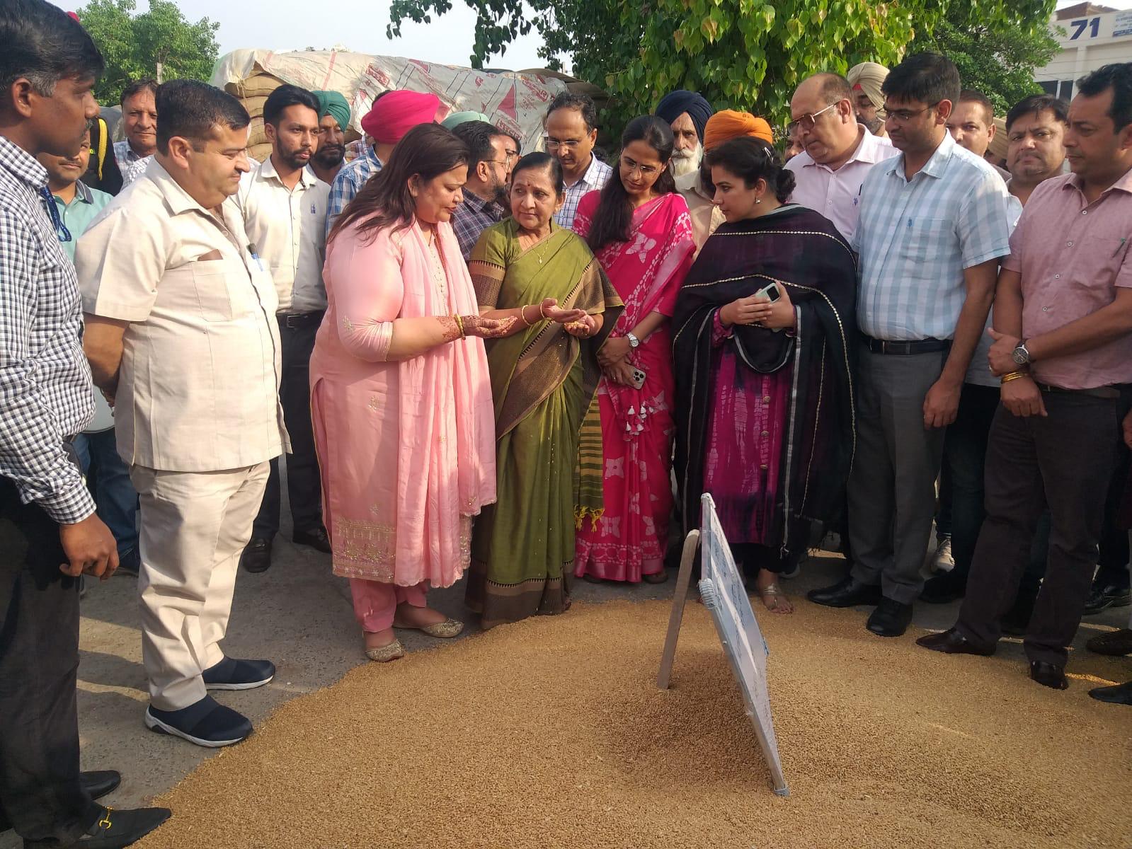 ਕੇਂਦਰੀ ਰਾਜ ਮੰਤਰੀ ਸ਼੍ਰੀਮਤੀ ਨਿਮੁਬੇਨ ਜਯੰਤੀਭਾਈ ਬੰਬਾਨੀਆ ਰਾਜਪੁਰਾ ਮੰਡੀ ਵਿਖੇ ਕਣਕ ਦੀ ਆਮਦ, ਕਣਕ ਦੀ ਖਰੀਦ ਦੇ ਪ੍ਰਬੰਧਾਂ ਦਾ ਜਾਇਜ਼ਾ ਲੈਣ ਦੇ ਨਾਲ-ਨਾਲ ਕਿਸਾਨਾਂ ਅਤੇ ਆੜਤੀਆਂ ਨਾਲ ਵਿਸਥਾਰ ਵਿੱਚ ਗੱਲਬਾਤ ਕੀਤੀ। ਉਹਨਾਂ ਨੇ ਪੰਜਾਬ ਸਰਕਾਰ ਵੱਲੋਂ ਖਰੀਦ ਲਈ ਕੀਤੇ ਗਏ ਪ੍ਰਬੰਧਾਂ ਉੱਤੇ ਸੰਤੁਸ਼ਟੀ ਦਾ ਪ੍ਰਗਟਾਵਾ ਕੀਤਾ ਅਤੇ ਆਪਣੇ ਅਧਿਕਾਰੀਆਂ ਨੂੰ ਹਦਾਇਤ ਕੀਤੀ ਕਿ ਉਹ ਖਰੀਦ ਕੀਤੇ ਗਏ ਮਾਲ ਦੀ ਲਿਫਟਿੰਗ ਨਾਲੋ-ਨਾਲ ਯਕੀਨੀ ਬਣਾਉਣ।