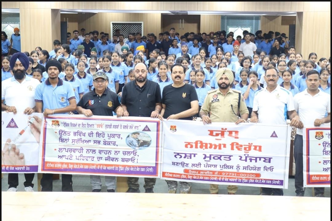 Mohali, 8 July – Newsline Express – As part of the NCC Airwing Annual Training Camp at Chandigarh University, a vital session on Traffic and Drug Awareness was conducted today by DSP Karnail Singh, DSP Traffic Mohali, Punjab. Addressing over 600 cadets, DSP Karnail Singh highlighted the importance of adhering to traffic rules, the dangers of rash driving, and the devastating impact of drug abuse on youth and society.