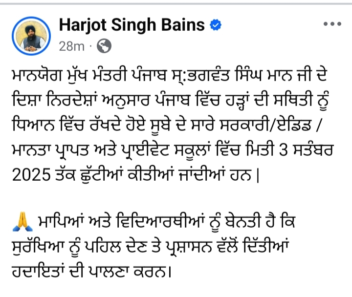 เจเฉฐเจกเฉเจเฉเฉเจน, 31 เจ เจเจธเจค 2025 : เจจเจฟเจเจเจผเจฒเจพเจเจจ เจเจเจธเจชเฉเจฐเฉเจธ – เจชเฉฐเจเจพเจฌ เจตเจฟเจ เจชเฉ เจฐเจนเฉ เจญเจพเจฐเฉ เจฌเจฐเจธเจพเจค เจ เจคเฉ เจนเจฟเจฎเจพเจเจฒ เจตเจฟเฉฑเจเฉเจ เจเจเจฆเฉ เจตเจพเจงเฉ เจชเจพเจฃเฉ เจเจพเจฐเจจ เจชเฉฐเจเจพเจฌ เจตเจฟเจ เจนเฉเฉเจนเจพเจ เจฆเฉ เจธเจฅเจฟเจคเฉ เจฌเจฐเจเจฐเจพเจฐ เจนเฉเฅค เจเจธเฉ เจเจฐ เจเฉ เจธเจเฉเจฒเฉ เจฌเฉฑเจเจฟเจ เจฆเฉ เจธเฉเจฐเฉฑเจเจฟเจ เจฒเจ เจชเฉฐเจเจพเจฌ เจฆเฉ เจธเจเฉเจฒเจพเจ เจตเจฟเจ เจเฉเฉฑเจเฉเจเจ 3 เจธเจคเฉฐเจฌเจฐ เจคเฉฑเจ เจตเจงเจพ เจฆเจฟเฉฑเจคเฉเจเจ เจเจเจเจ เจนเจจเฅค