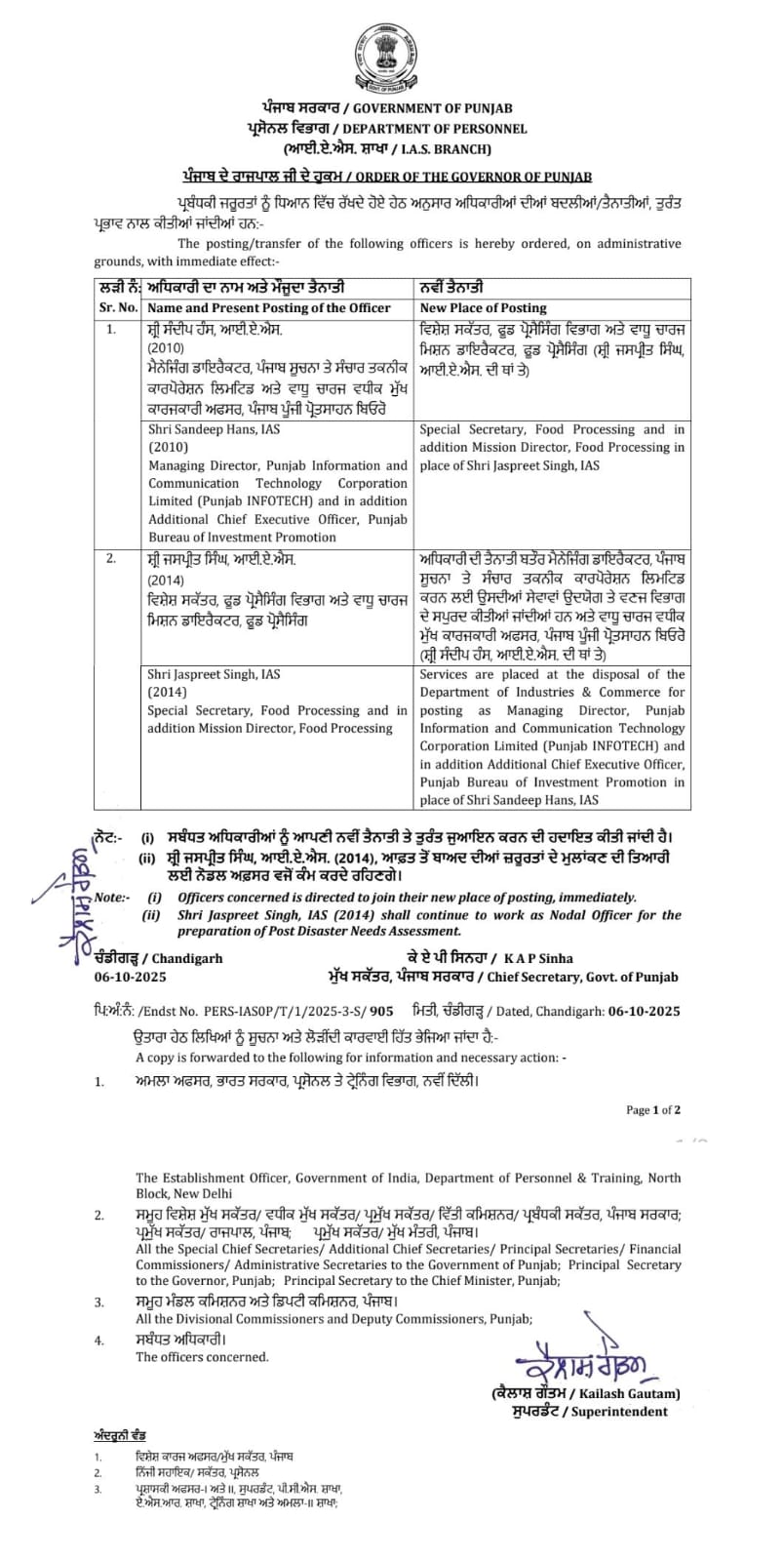๐ฉ เจฐเจพเจเจชเจพเจฒ เจฆเฉ เจนเฉเจเจฎเจพเจ โเจคเฉ 2 IAS เจ เจงเจฟเจเจพเจฐเฉเจเจ เจฆเฉ เจเฉเจคเฉ เจเจ เจคเจฌเจพเจฆเจฒเฉ