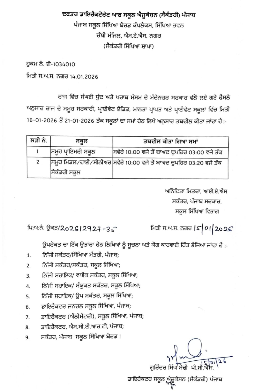 เจเฉฐเจกเฉเจเฉเฉเจน, 15 เจเจจเจตเจฐเฉ – เจจเจฟเจเจเจผเจฒเจพเจเจจ เจเจเจธเจชเฉเจฐเฉเจธ –ย ย ย ย ย ย เจชเฉฐเจเจพเจฌ เจธเจฐเจเจพเจฐ เจตเจฒเฉเจ เจธเฉเจฌเฉ เจตเจฟเจ เจธเฉฐเจเจฃเฉ เจงเฉเฉฐเจฆ เจคเฉ เจเจผเจฐเจพเจฌ เจฎเฉเจธเจฎ เจฆเฉ เจเจพเจฐเจจ เจธเจเฉเจฒเจพเจ เจฆเจพ เจธเจฎเจพเจ เจฌเจฆเจฒ เจฆเจฟเฉฑเจคเจพ เจเจฟเจ เจนเฉเฅค เจธเจพเจฐเฉ เจธเจเฉเจฒ เจธเจตเฉเจฐเฉ 10 เจตเจเฉ เจฒเฉฑเจเจฃเจเฉเฅค
