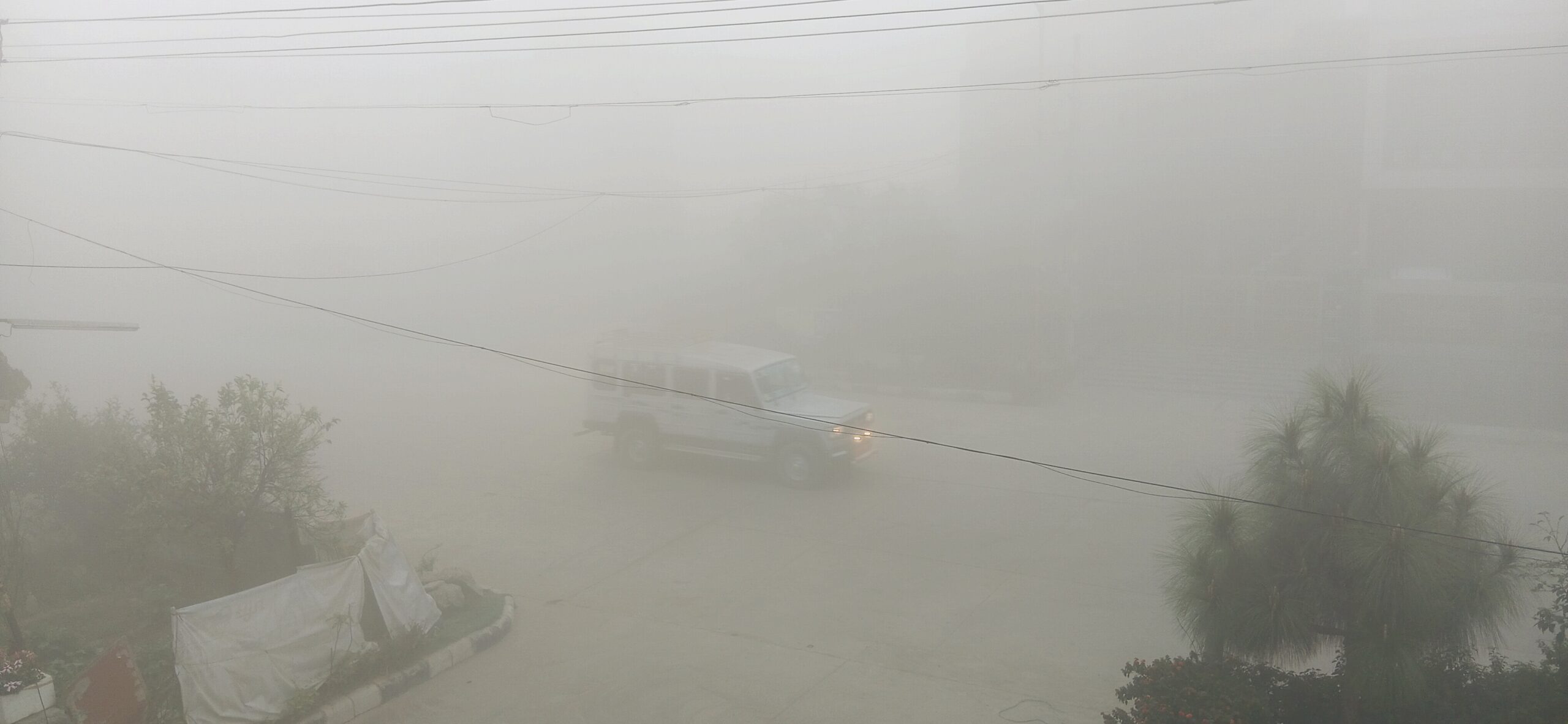 рдШрдиреА рдзреБрдВрдз рдХреЗ рдХрд╛рд░рдг рд╕рдбрд╝рдХреЛрдВ рдкрд░ рд╡рд╛рд╣рди рд░реЗрдВрдЧрддреЗ рдирдЬрд░ рдЖрдПред рдХрд╛рд░ рдФрд░ рджреЛрдкрд╣рд┐рдпрд╛ рд╡рд╛рд╣рди рдЪрд╛рд▓рдХ рд╣реЗрдбрд▓рд╛рдЗрдЯ рдЬрд▓рд╛рдХрд░ рдмреЗрд╣рдж рд╕рд╛рд╡рдзрд╛рдиреА рд╕реЗ рдЪрд▓рддреЗ рджрд┐рдЦреЗред рджреГрд╢реНрдпрддрд╛ рдХрдо рд╣реЛрдиреЗ рд╕реЗ рджреБрд░реНрдШрдЯрдирд╛ рдХреА рдЖрд╢рдВрдХрд╛ рднреА рдмрдиреА рд╣реБрдИ рд╣реИред