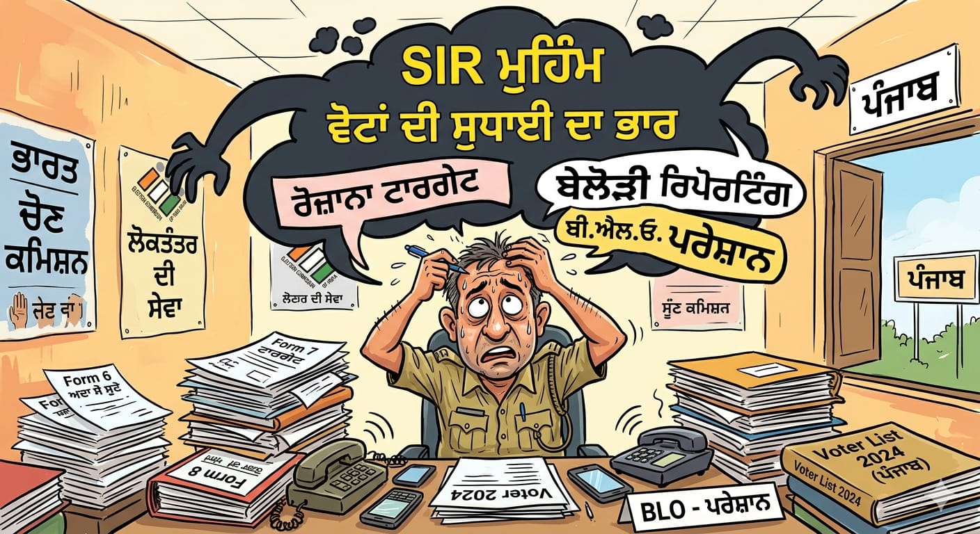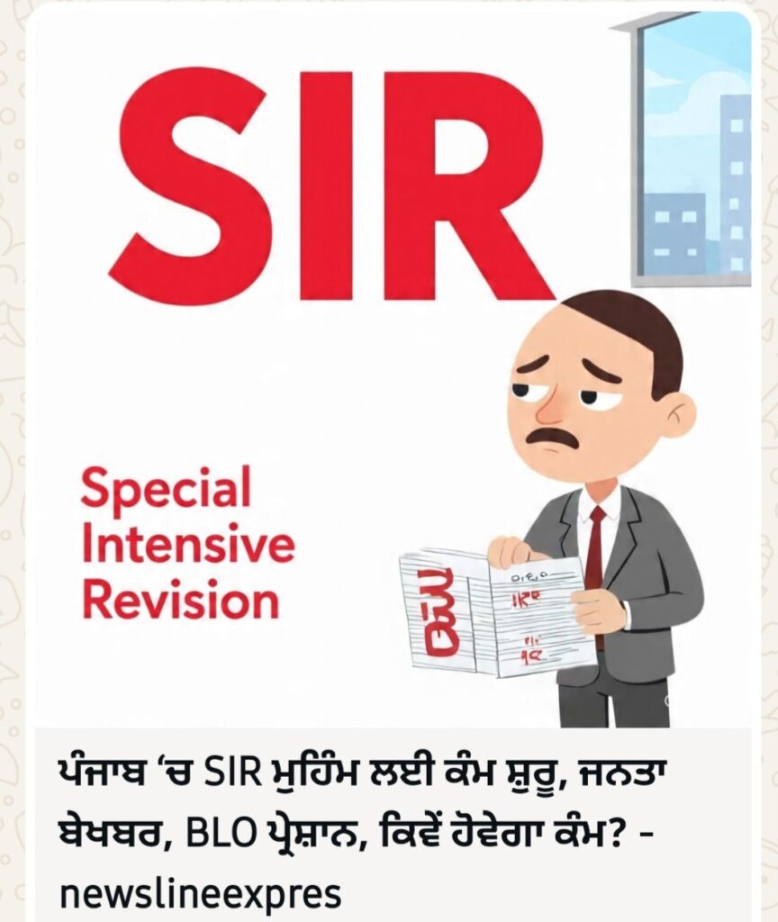 ਪਟਿਆਲਾ, 16 ਅਪ੍ਰੈਲ – ਨਿਊਜ਼ਲਾਈਨ ਐਕਸਪ੍ਰੈਸ – ਪੰਜਾਬ ਵਿੱਚ ਚੋਣ ਕਮਿਸ਼ਨ ਆਫ ਇੰਡੀਆ ਵੱਲੋਂ ਸਪੈਸ਼ਲ ਇੰਟੈਂਸਿਵ ਰਿਵਿਜ਼ਨ (SIR) ਦੀ ਪ੍ਰਕਿਰਿਆ ਸ਼ੁਰੂ ਕੀਤੀ ਗਈ ਹੈ। ਇਸ ਮੁਹਿੰਮ ਦਾ ਉਦੇਸ਼ ਵੋਟਰ ਲਿਸਟ ਨੂੰ ਪੂਰੀ ਤਰ੍ਹਾਂ ਅਪਡੇਟ ਅਤੇ ਸਹੀ ਬਣਾਉਣਾ ਦੱਸਿਆ ਜਾ ਰਿਹਾ ਹੈ, ਜਿਸ ਲਈ ਬੂਥ ਲੈਵਲ ਅਧਿਕਾਰੀ (BLO) ਘਰ-ਘਰ ਜਾ ਕੇ ਵੋਟਰਾਂ ਦੀ ਤਸਦੀਕ ਕਰ ਰਹੇ ਹਨ। ਇਸ ਦੌਰਾਨ ਨਵੇਂ ਵੋਟਰਾਂ ਦੇ ਨਾਮ ਜੋੜੇ ਜਾ ਰਹੇ ਹਨ, ਜਦਕਿ ਗਲਤ, ਡੁਪਲੀਕੇਟ ਜਾਂ ਮ੍ਰਿਤਕ ਵੋਟਰਾਂ ਦੇ ਨਾਮ ਹਟਾਏ ਜਾ ਰਹੇ ਹਨ। ਸਭ ਤੋਂ ਜ਼ਰੂਰੀ ਕੰਮ ਇਸ ਵਿੱਚ 2003 ਦੀ ਪੁਰਾਣੀ ਵੋਟਰ ਲਿਸਟ ਨਾਲ ਮੈਪਿੰਗ ਕਰਕੇ ਮੌਜੂਦਾ ਡਾਟਾ ਦੀ ਜਾਂਚ ਕਰਨਾ ਹੈ।