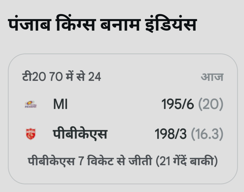เคเค เคเฅ เคฐเฅเคฎเคพเคเคเค เคฎเฅเคเคพเคฌเคฒเฅ เคฎเฅเค เคชเคเคเคพเคฌ เคเคฟเคเคเฅเคธ (PBKS) เคจเฅ เคฎเฅเคเคฌเค เคเคเคกเคฟเคฏเคจเฅเคธ (MI) เคเฅ 7 เคตเคฟเคเฅเค เคธเฅ เคนเคฐเคพ เคฆเคฟเคฏเคพ เคนเฅเฅค เคตเคพเคจเคเฅเคกเคผเฅ เคธเฅเคเฅเคกเคฟเคฏเคฎ เคฎเฅเค เคเฅเคฒเฅ เคเค เคเคธ เคฎเฅเค เคฎเฅเค เคชเคเคเคพเคฌ เคจเฅ เคถเคพเคจเคฆเคพเคฐ เคชเฅเคฐเคฆเคฐเฅเคถเคจ เคเคฐเคคเฅ เคนเฅเค เคเฅเคค เคฆเคฐเฅเค เคเฅเฅค
