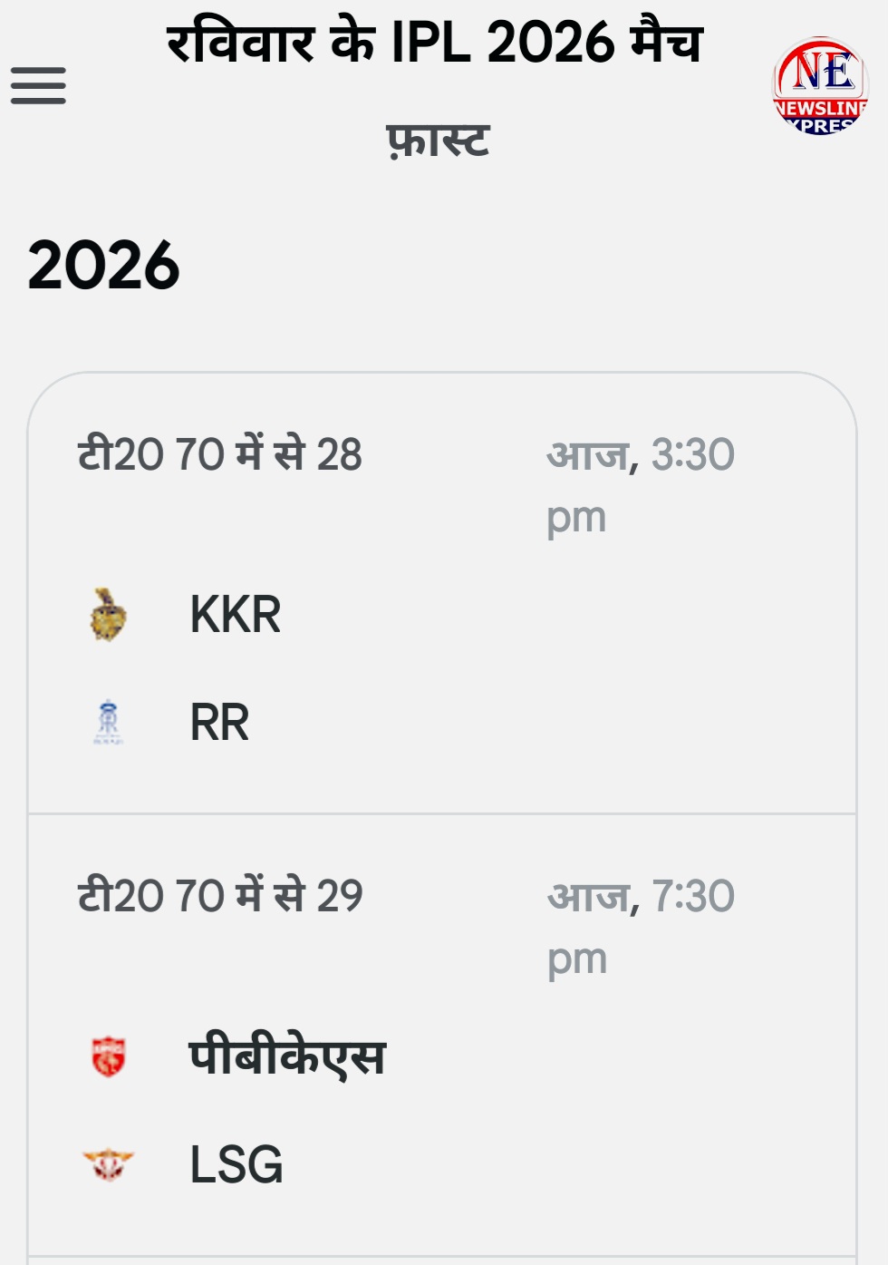 рдЖрдЬ рдХрд╛ рд░рд╡рд┐рд╡рд╛рд░ рдХреНрд░рд┐рдХреЗрдЯ рдкреНрд░реЗрдорд┐рдпреЛрдВ рдХреЗ рд▓рд┐рдП рдмреЗрд╣рдж рдЦрд╛рд╕ рд╣реЛрдиреЗ рд╡рд╛рд▓рд╛ рд╣реИред рдЗрдВрдбрд┐рдпрди рдкреНрд░реАрдорд┐рдпрд░ рд▓реАрдЧ (IPL) 2026 рдореЗрдВ рдЖрдЬ ‘рдбрдмрд▓ рд╣реИрдбрд░’ рдХрд╛ рджрд┐рди рд╣реИ, рдЬрд╣рд╛рдБ рджреЛ рдореИрдЪреЛрдВ рдореЗрдВ рдЪрд╛рд░ рджрд┐рдЧреНрдЧрдЬ рдЯреАрдореЗрдВ рдЬреАрдд рдХреЗ рд▓рд┐рдП рдЖрдкрд╕ рдореЗрдВ рднрд┐рдбрд╝реЗрдВрдЧреАред рдЬрд╣рд╛рдБ рдПрдХ рддрд░рдл рдХреЛрд▓рдХрд╛рддрд╛ рдХрд╛ рдРрддрд┐рд╣рд╛рд╕рд┐рдХ рдИрдбрди рдЧрд╛рд░реНрдбрдиреНрд╕ рдореИрджрд╛рди рддреИрдпрд╛рд░ рд╣реИ, рд╡рд╣реАрдВ рджреВрд╕рд░реА рдУрд░ рдкрдВрдЬрд╛рдм рдХреЗ рдиреНрдпреВ рдЪрдВрдбреАрдЧрдврд╝ рд╕реНрдерд┐рдд рдорд╣рд╛рд░рд╛рдЬрд╛ рдпрд╛рджрд╡рд┐рдВрджреНрд░ рд╕рд┐рдВрд╣ рдкреАрд╕реАрдП рд╕реНрдЯреЗрдбрд┐рдпрдо рдореЗрдВ рд░реЛрдорд╛рдВрдЪ рдЕрдкрдиреЗ рдЪрд░рдо рдкрд░ рд░рд╣рдиреЗ рдХреА рдЙрдореНрдореАрдж рд╣реИред