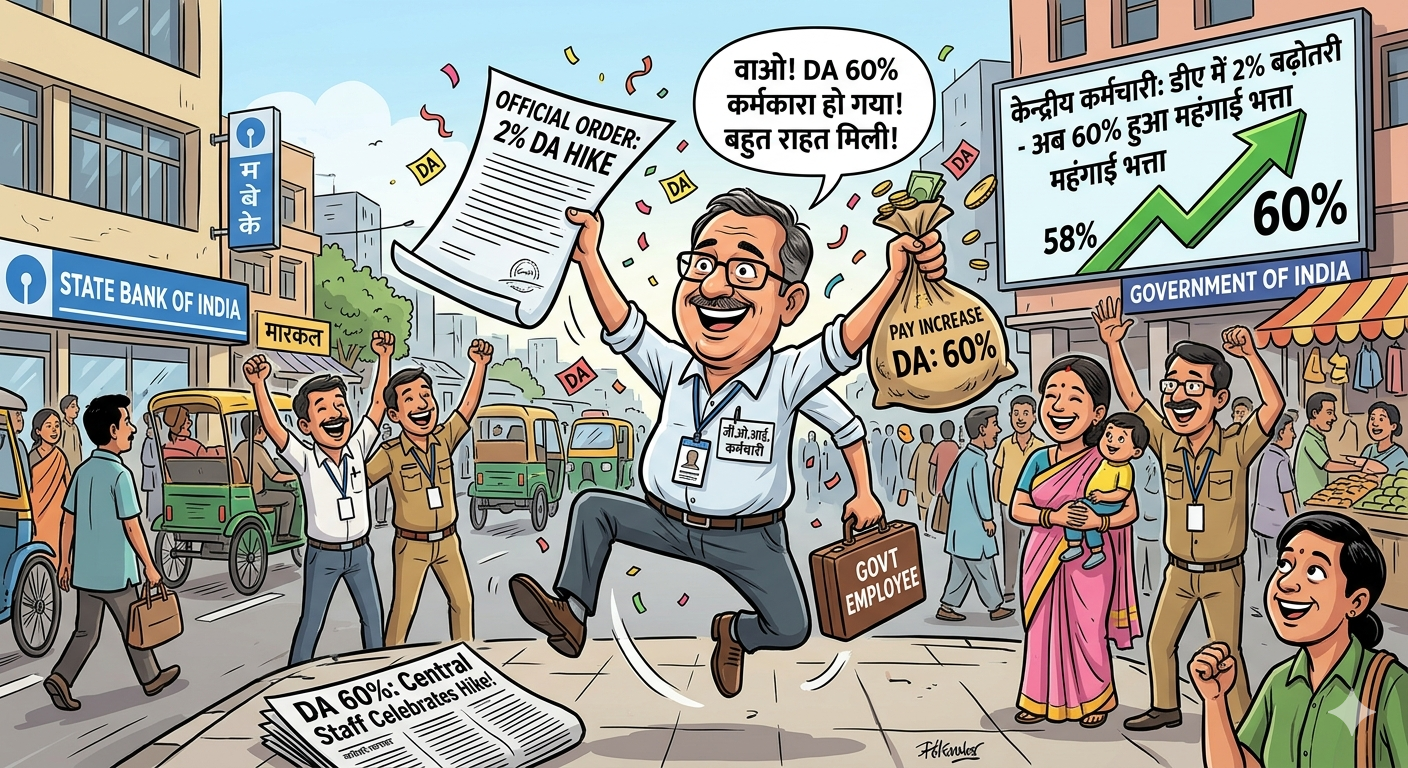 ЁЯЪй рдХреЗрдВрджреНрд░реАрдп рдХрд░реНрдордЪрд╛рд░рд┐рдпреЛрдВ рдХреЛ рд░рд╛рд╣рдд: DA рдореЗрдВ 2% рдмрдврд╝реЛрддрд░реА, рдЕрдм 60% рд╣реБрдЖ рдорд╣рдВрдЧрд╛рдИ рднрддреНрддрд╛