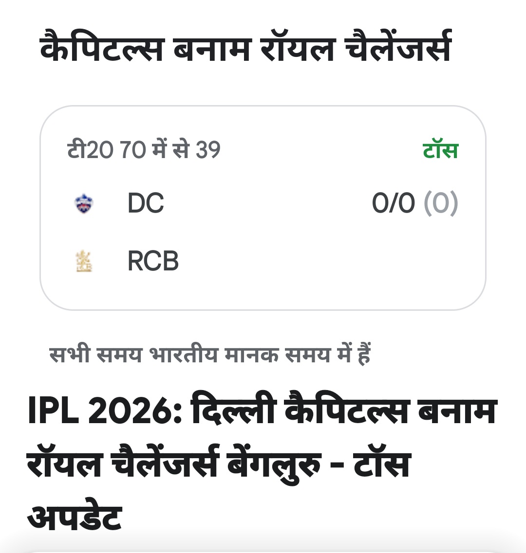 🚩IPL 2026: दिल्ली कैपिटल्स बनाम रॉयल चैलेंजर्स बेंगलुरु – टॉस अपडेट
